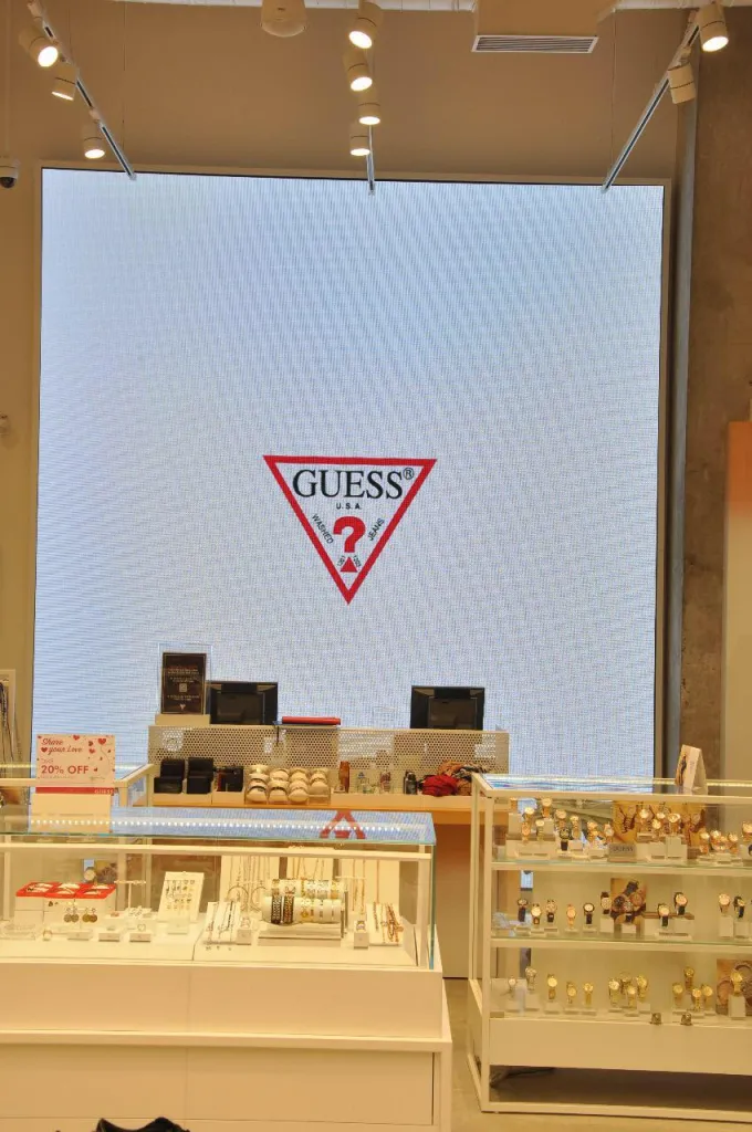 In the GUESS Store project, Uslim, Unilumin's front maintenance creative display helps GUESS promote its products, bringing a modern and high-end look to the brand.
