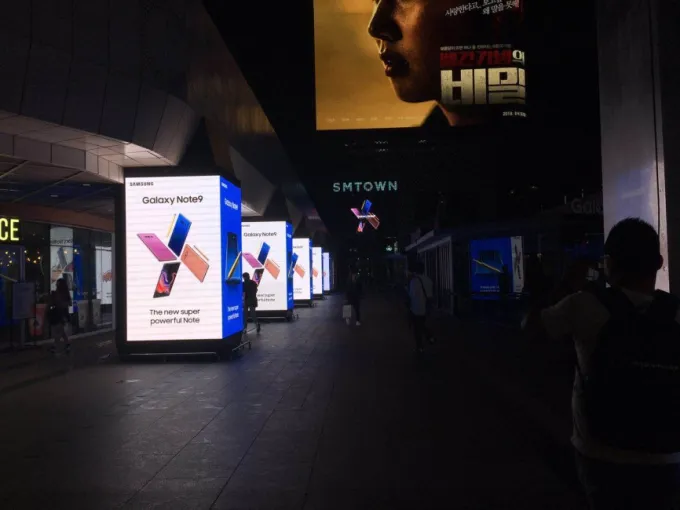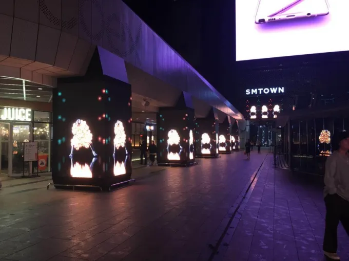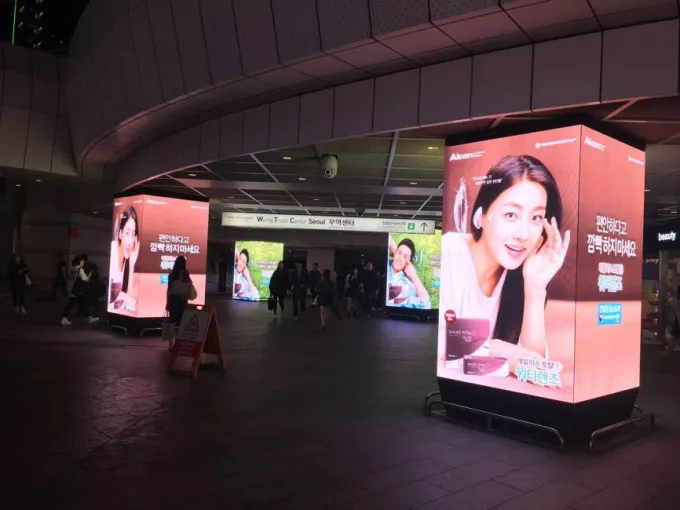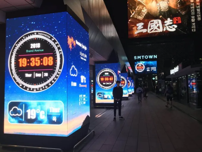 In this project, several high-definition four-side screens are located at the bottom of the Samsung building; they are passing various fashion messages among the endless crowds and attracting the attention of many passers-by.